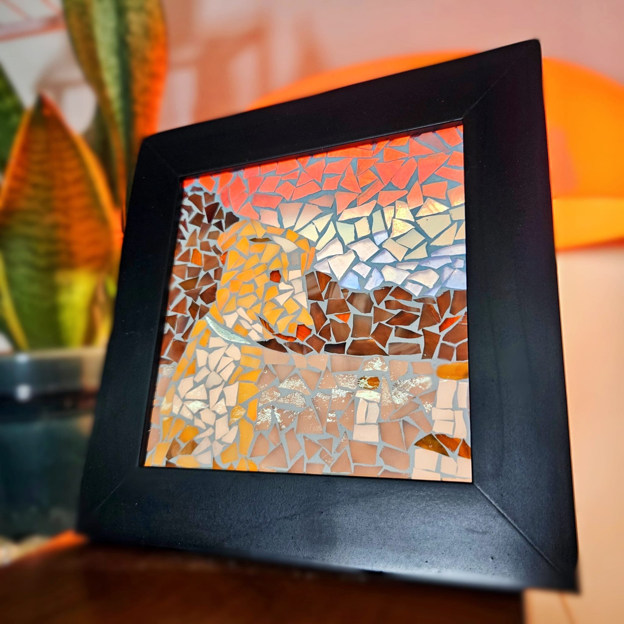 Made to shine in the light with vibrant, hand cut stained glass pieces are put together on glass to create your mosaic style pet.